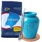 Mocna Yerba Mate Taragui Despalada Sin Palo w kompletnym zestawie. Odkryj mocny argentyński smak ostrokrzewu paragwajskiego i wytrzymałe akcesoria. Polecamy!