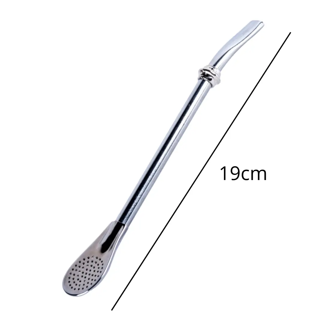 Bombilla stalowa 19 cm z filtrem łyżeczkowym i pierścieniem.
